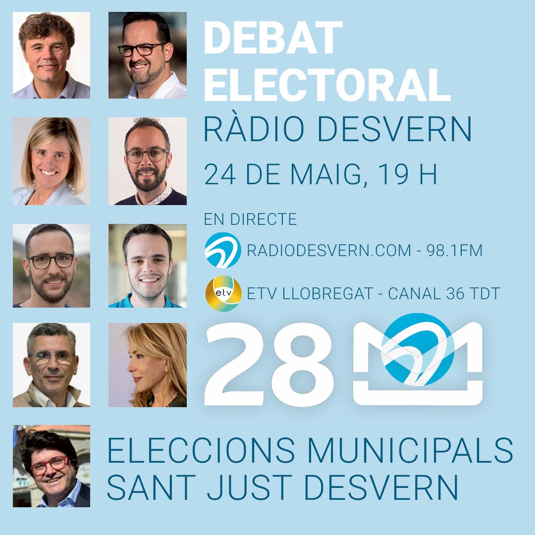 Debat electoral Amb Joan Basagañas, cap de llista PSC, Sergi Seguí, cap de llista d’ERC, Laia Flotats, cap de llista d’Endavant Sant Just, Ramon Figuerola, cap de llista de Junts, Just Fosalva, cap de llista de Sant Just En Comú, Aleix Abadia, cap de llista de la CUP Sant Just, Kiko Ferrer, cap de llista de Som-hi Sant Just